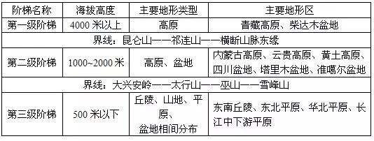 地势特点:西高东低,呈阶梯状分布。西部多为山地、高原和盆地,东部则以平原和丘陵为主。