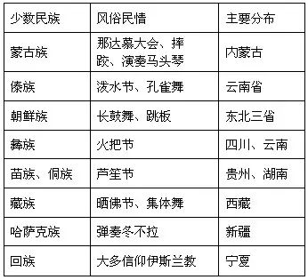 2、民族的分布(P19 少数民族的名称、人口和主要分布地区表格)